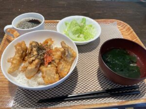 サクッとした豚ロースの天ぷらを丼にいたしました。ボリュームたっぷりのランチメニューになっております。